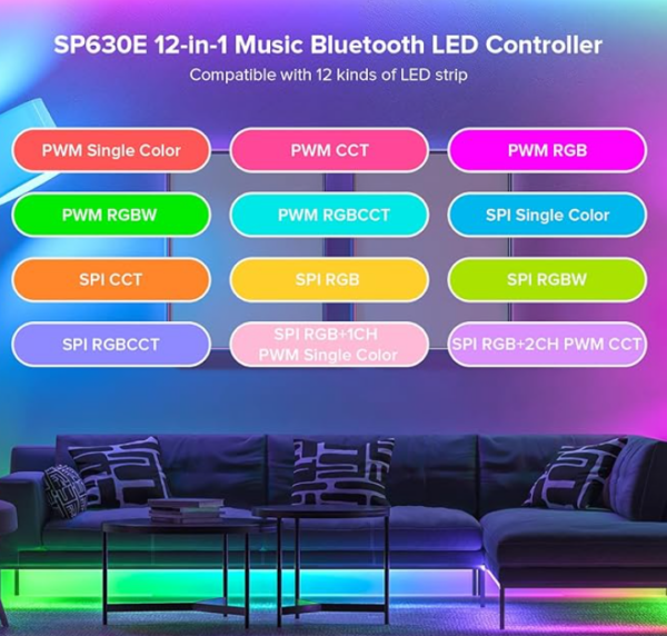 | Product Name | 12-in-1 Music Bluetooth LED Controller (12-in-1: SPI IC chip LED strip + PWM LED strip) |