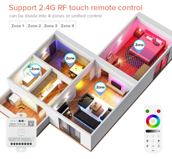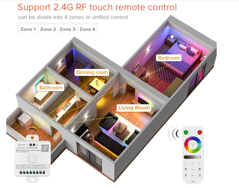 This controller represents the cutting edge of LED control technology, combining Bluetooth connectivity, music synchronization, and multi-zone control capabilities in one elegant package. Compatible with both PWM and SPI addressable LED strips, this controller offers unprecedented flexibility for any lighting project.