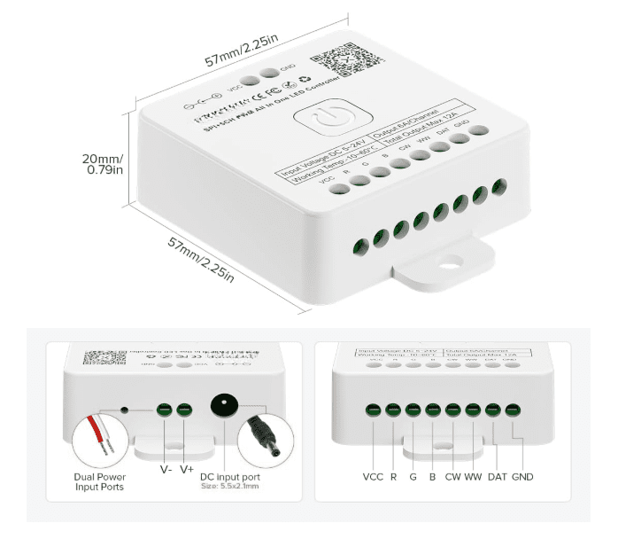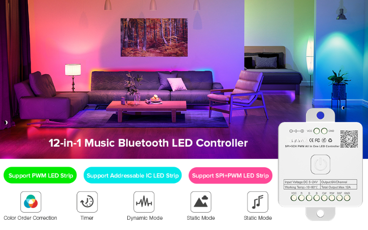 | Compatible LED Strip Lights | SPI RGB/RGBW LED strip or PWM 4CH RGB/5CH RGBW LED strip |