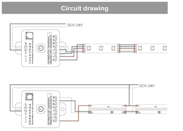 - Power Connection: Ensure LED controller has DC 5V-24V power supply matching your LED strip requirements